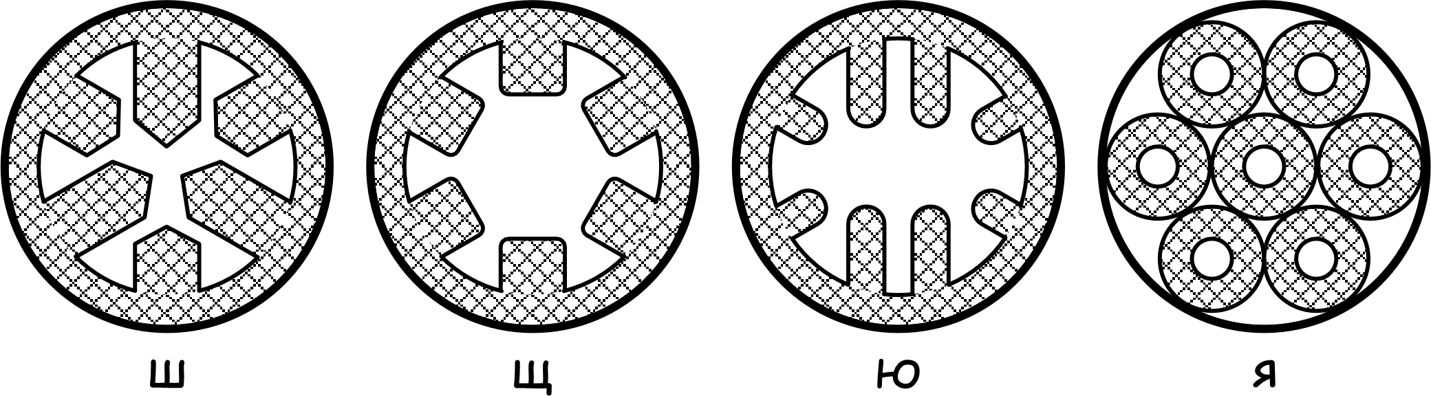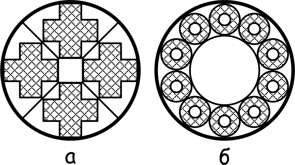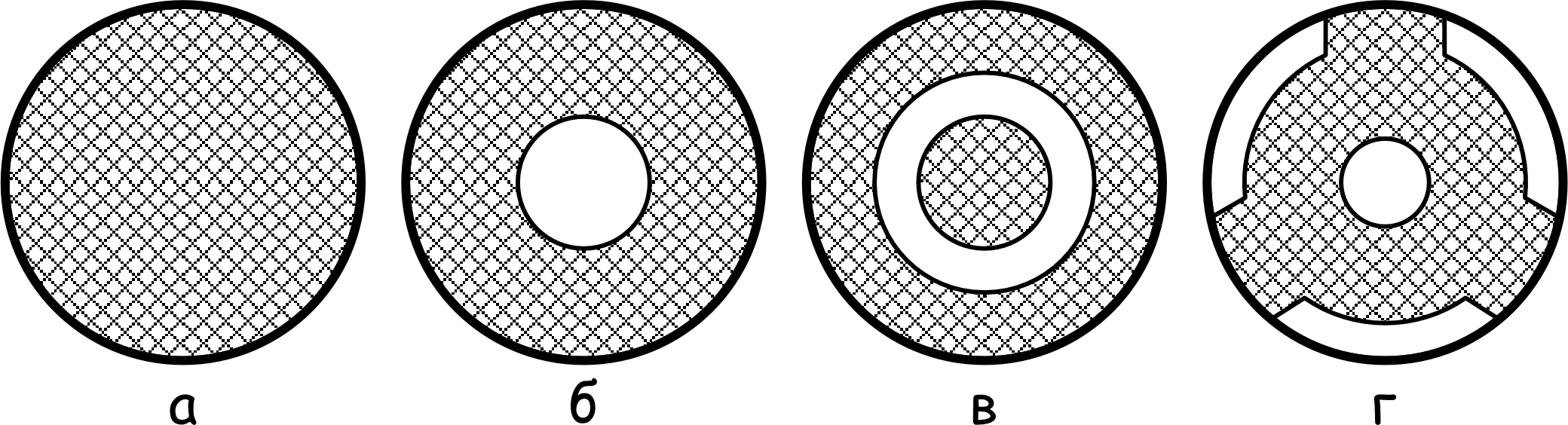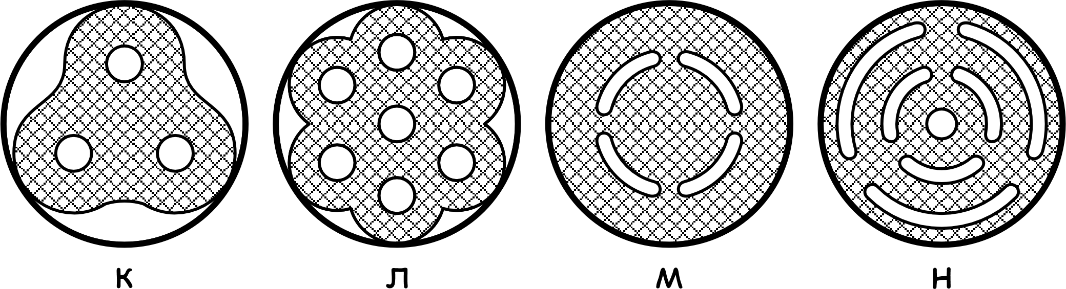 3. Циліндричні шашки з декількома каналами (к, л, м, н):