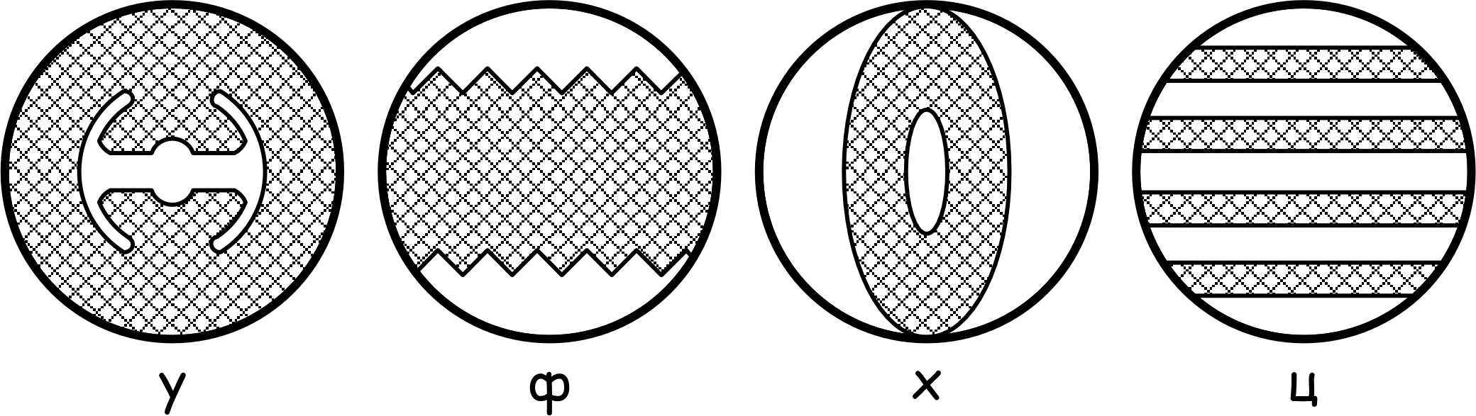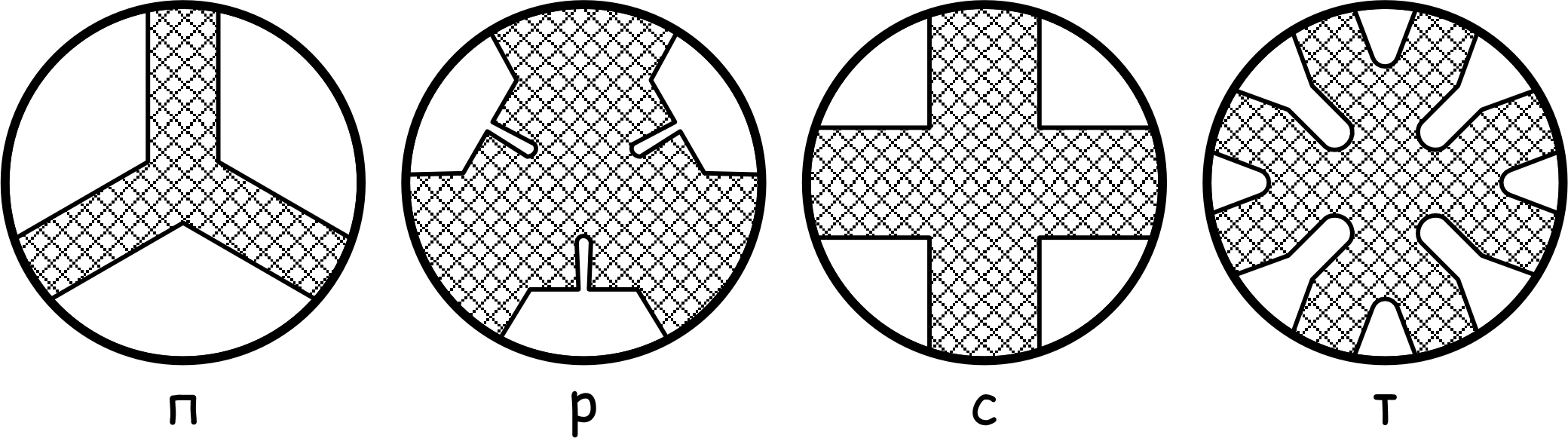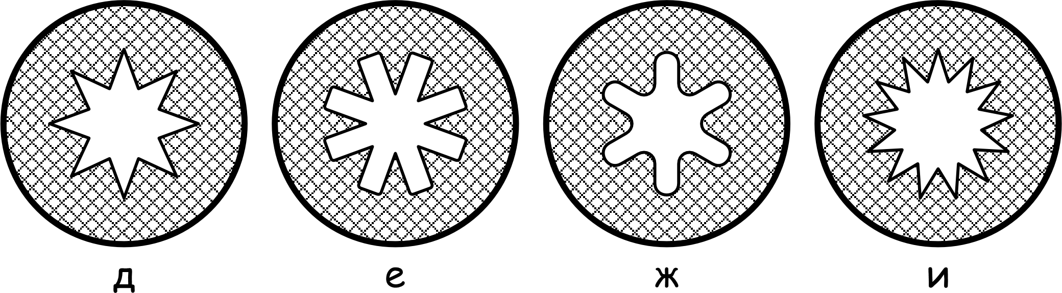2. Циліндричні шашки із зіркоподібним каналом (д, е, ж, и):